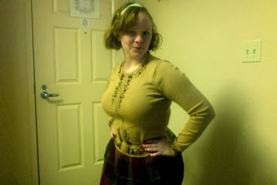 However, I was able to take pictures on with my computer of the new outfit that I bought when out today with my roommate and good friend Morgan. We tried to go to the Goodwill Outlet in our area, but alas, it moved much farther than we were willing to drive, at least today. So we drove around and came across a thrift store called Second Hand thrift store.